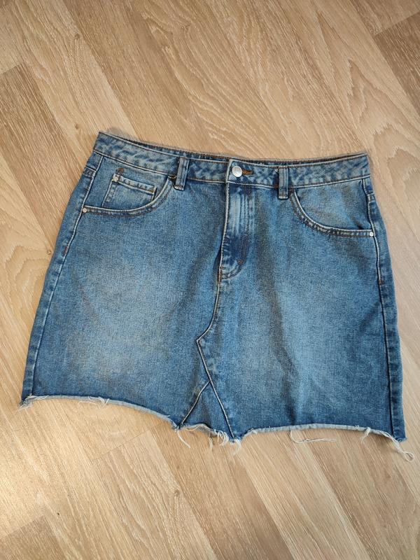 Стильная джинсовая юбка, трапеция. Состояние идеальное. Размер М-Л Параметры: длина - 40 см ПОТ - 41 см ПОБ - 51 см Низ - 56 см