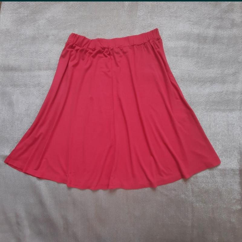 Спідничка літня на широкій резинці(4см) коралового кольору (перше фото реальне) Легка падуча тканина- віскоза 95% ПОТ 37см тягнеться до 48см По низу ширина ПО 90см Довжина загальна 58см