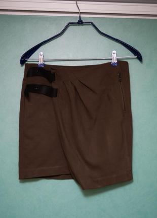 Юбка Mango цвета хаки, трикотажная, на запах, состояние отличное