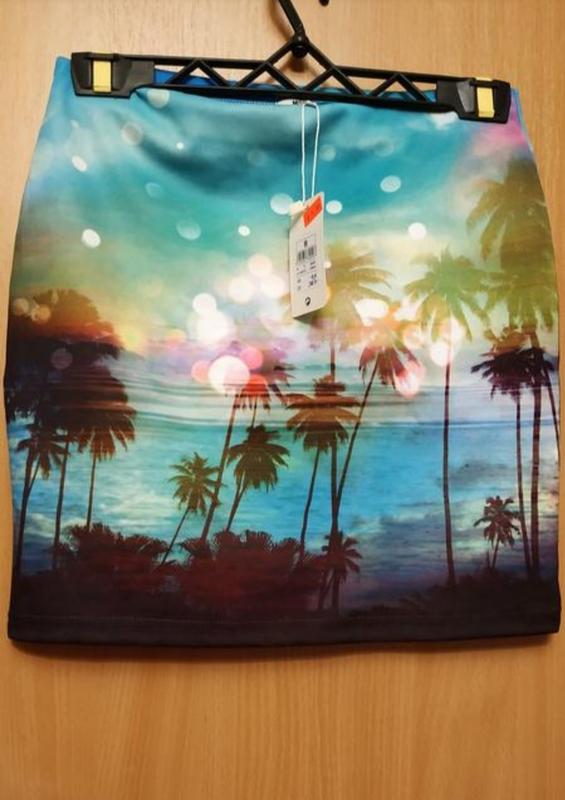 Нова, класна літня міні спідниця в обтяжку, з принтом пляж. пот 36 поб 42 довжина 40.5