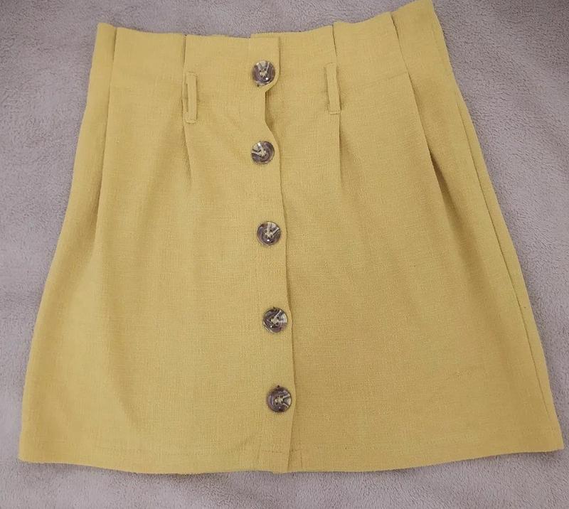 Спідниця жовтого кольору, без дефектів, гарний стан, майже не одягалася, тканина після прання не втрачає колір! Розмір зазначений на бірці на останньому фото.