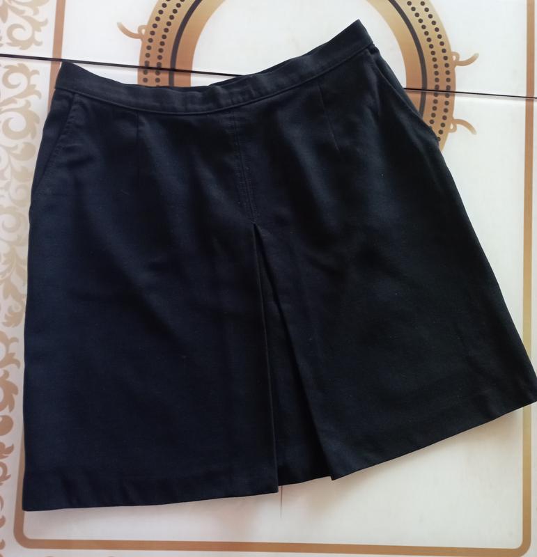 Фірмова , базова , вовняна спідниця на підкладці , з кишенями , попереду зі складкою , ПІТ 37 , ПІБ 54 , довжина виробу 47 .