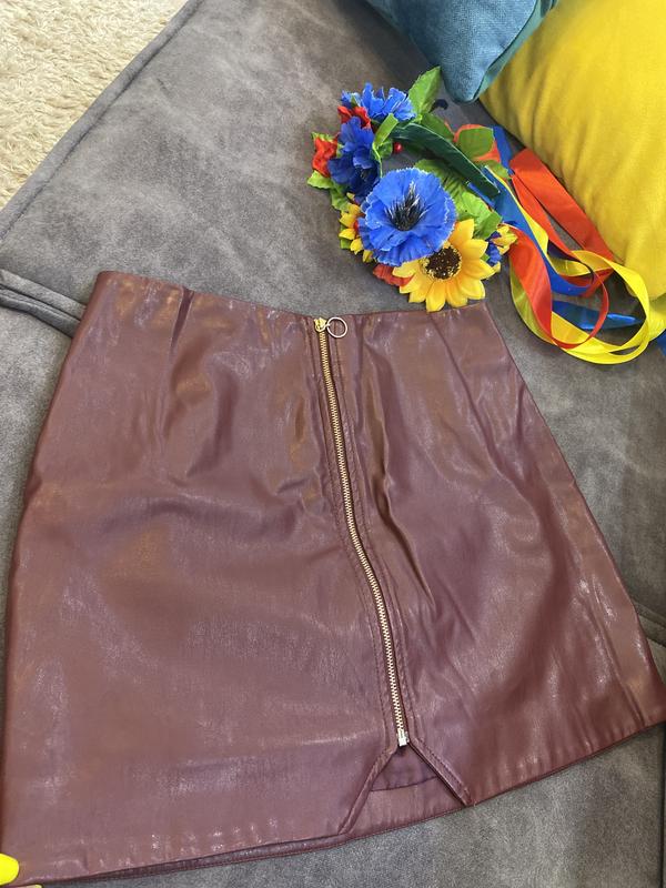 Стильна спідничка під шкіру маленький розмір на замок Заміри Талія 66 (+2 см вшито ) Бедра 93 Довжина 36