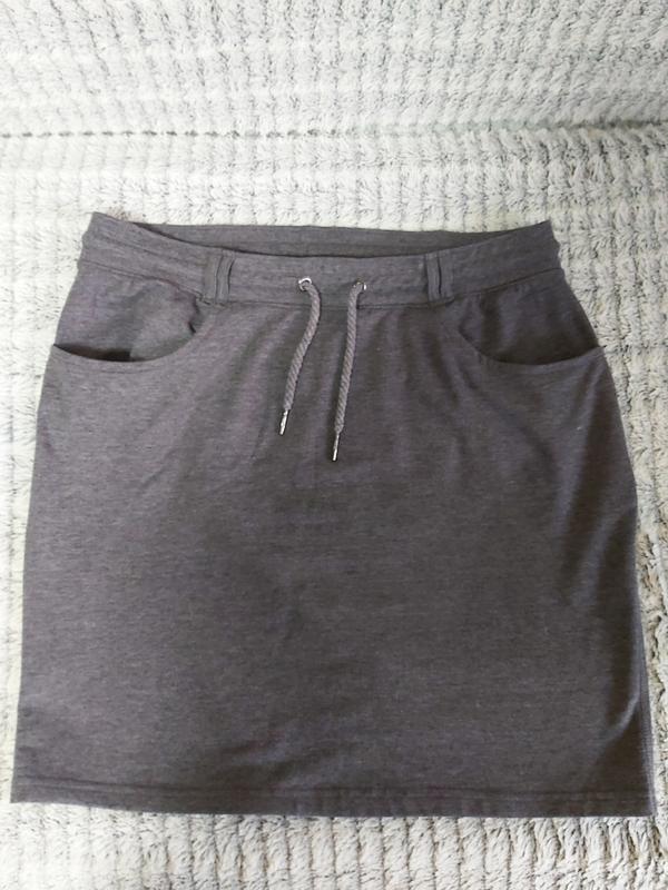Продам коротку сіру спідничку. Довжина 49, талія 42, розтягується до 50, бедра 55 см.