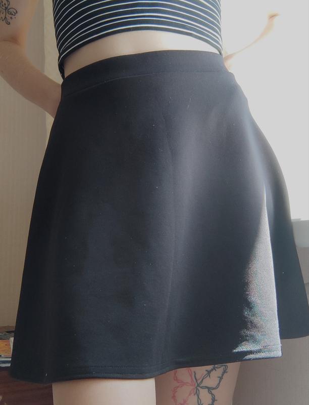 Чорна спідничка від Boohoo з приємного матеріалу. Трохи тягнеться завдяки резинці