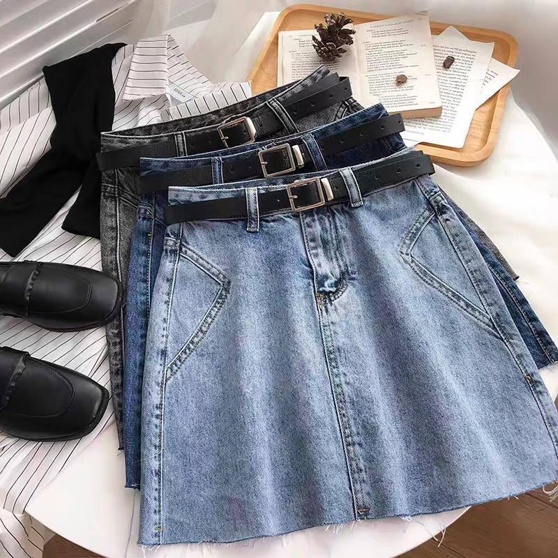 Джинсовые юбки с ремнем💔 Мод:694 Размер: s,m Ткань: джинс коттон Цвет: синий,серый Длина 37см