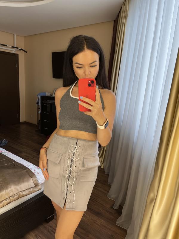 Стильна, тканина під замш. Еластична , гарно тягнеться. Сідає ідеально.