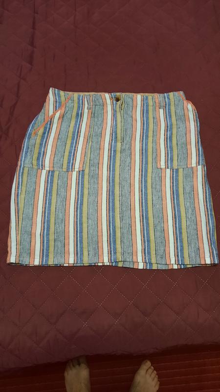 Очень крутая,лёгкая юбочка из льна с вискозой, брала себе,мала. Длина 47,пояс 38,бедра 50.