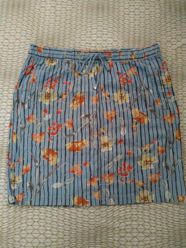 Довжина 51 см, напівобхват талії 43 см, напівобхват стегон 57 см, в поясі резинка, з кишенями.
