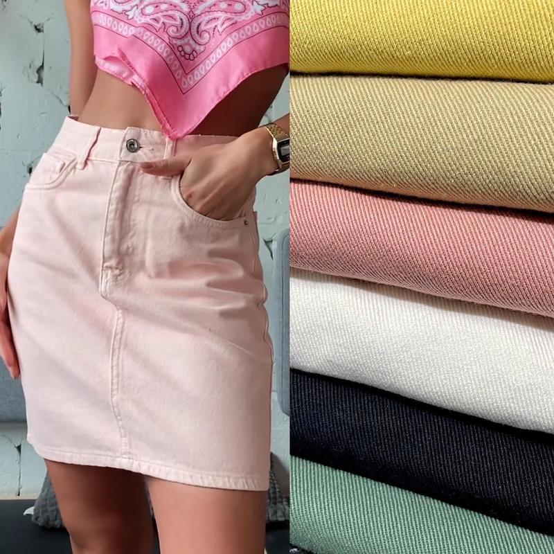 Ціна 350грн🔥🔥🔥 Джинсові спідниці🖤💚💛 Кольори: білий, пудра, беж, жовтий, хакі, чорний. Розміри М, Л М: пот 34, поб 45 Л: пот 36, поб 47 Довжина 44см