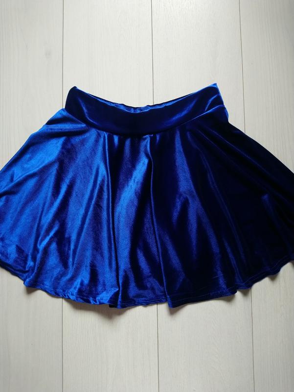 Спідничка кльош в ідеальному стані Матеріал бархатний, 95% поліестр і 5 еластан Розмір М Довжина 41 см Півобсяг пояса 33 см і тягнеться до 60 см на резинці