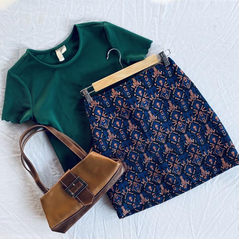 Спідниця плотна не тягнеться. На потаємній блискавці позаду. Заміри: талія півобхват 35 см Бедра півобхват 46 см Довжина 42 см Стан ідеальний. Відправка Укр/НП поштою.