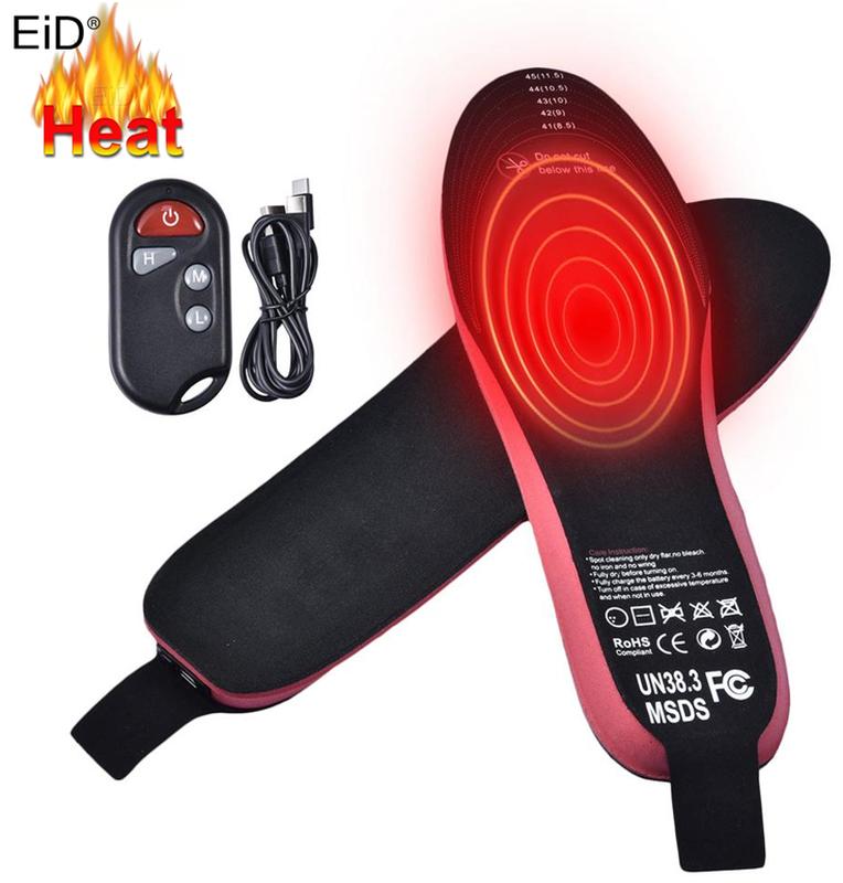 Беспроводные стельки с подогревом на пульте - это удобное и практичное решение для обогрева ног в холода и морозы. Катание на лыжах, коньках, пешие походы и катание на санках - станут для вас намного приятней со стельками с подогревом. Стельки поставляются в универсальном размере, каждый из этих размеров подрезается под нужный вам с помощью обычных ножниц. Материал стелек изготовлен из высококачественного вспененного материала, который очень мягкий, дышащий и удобный, что способствует идеальному сочетанию с вашей обувью в холодную зиму. Встроенная электронная система управления использует радиочастотное управление, которое обеспечивает согласованность, стабильность и эстетику, а также обеспечивает удобство контроля температуры. Пульт дистанционного управления стельками маленький и удобный. Длительность работы стеле беспрерывно: 8-10 ч - при температуре нагрева 35 С 6-8 ч - при температуре нагрева 40 С 3-4 ч - при температуре нагрева 45 С. Без проводов! Нагревательная подушка изготовлена из новейшего композитного материала из углеродного волокна, прочного, гибкого и водонепроницаемого. Это мягкое инфракрасное тепло также оказывает благотворное влияние на организм человека. Оно способствует кровообращению, выделяя дальние инфракрасные тепловые волны (при непосредственном контакте со ступней), которые мягко прогревают ступню ног. Особенностью модели является длительное время работы, удобное управление и возможность подогнать стельку под размер обуви. Работают стельки от встроенного внутрь литий полимерного аккумулятора емкостью. Такой емкости аккумулятора хватит на 3-4 часа в режиме сильного подогрева, 4-6 часов в режиме среднего подогрева и на 6-8 часов в режиме низкого подогрева. Зарядка встроенного аккумулятора происходит при помощи кабеля USB Type-C, имеющего раздвоенный кабель, для одновременной зарядки сразу двух стелек, от обычного источника питания 5В/1А. Питание пульта ДУ обеспечивается от одной батарейки 12В типа 27А, установленной внутри корпуса (в комплекте!). Инструкция: Стельки условно делятся по размеру на 2 типа - 35-40 и 41-46, при этом регулировка длины и размера выполняется самостоятельно, путем обрезания до нужного размера. Обрезать по длине стельку можно самостоятельно по пунктирной линии (5 вариантов), но не меньше, чем сплошная красная линия, так как там находиться крайняя часть нагревательного элемента. Толщина стельки под пяткой, около 15 мм, поэтому "подменять" оригинальную стельку следует в обуви, имеющей примерно такие же размеры или имеющей высокий подъём. Перед началом использования, необходимо зарядить встроенный аккумулятор и включить их кнопкой на стельке, нажав её (около 3 сек) до включения красного индикатора. Красный цвет означает режим максимального нагрева, повторное нажатие включает синий индикатор, который означает режим среднего нагрева, повторное нажатие зелёный индикатор - режим минимального нагрева. Так же эти режимы, можно переключать пультом ДУ, кнопка на пульте: "H/on" - максимальная температура/включить питание, "M" - средняя температура, "L" - минимальная температура. После включения кнопкой, можно использовать пульт ДУ, при необходимости включая нужный режим нагрева или выключая дистанционно. После отключения стелек с помощью пульта ДУ, они будут находиться в режиме дистанционного управления
