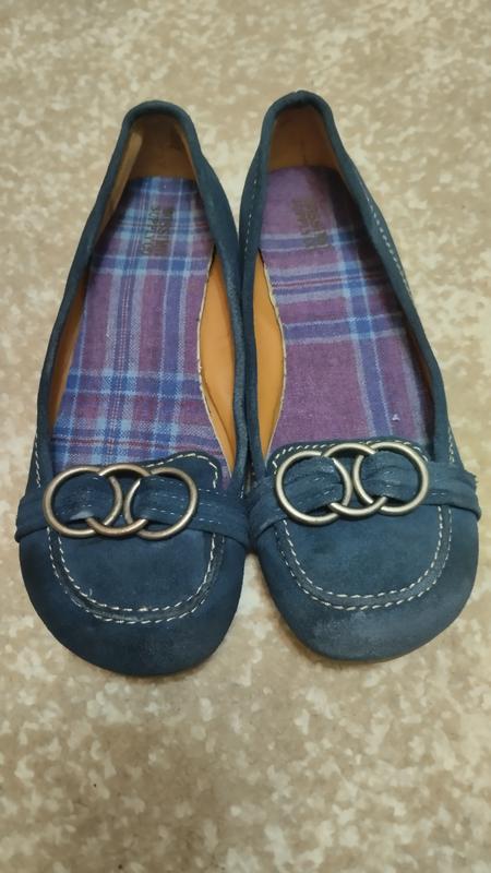 Балетки из натурального замша, замер стельки 24 см, стелька удобна. Цвет темно-синий. На узкую ножку и среднюю ножку, с невысоким подъемом.Стан хорош, нужно только немного подкрасить спереди левый. На фото 7 недостаток.