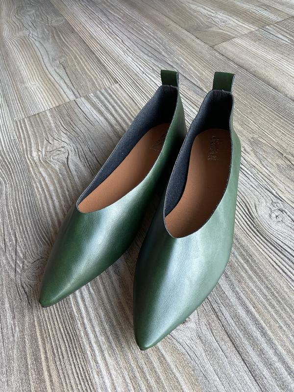 Новые! Весна- лето - осень. С острым носом, очень мягкие, удобные! Цвет благородный темно - зеленый. Захала для себя, подбирала. На ножку 26.5 см или 26 см, но плотную.