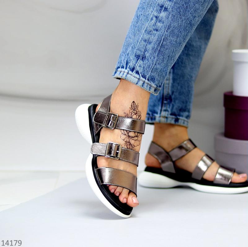 36-23,5 см Босоніжки "Cool" Матеріал - НАТУР.ШКІРА ФЛОТАР Устілка - Екошкіра Колір - Бронзовий Підошва - 4см/2см Заміри від краю до краю Виробник - Фабричний Китай Розмір у розмір