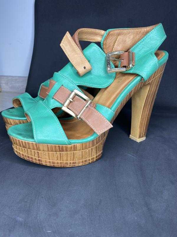 39 розмір Висота каблука - 10 см Висота передньої платформи 4 см Натуральна шкіра. Вдягались два рази, стан ідеальний