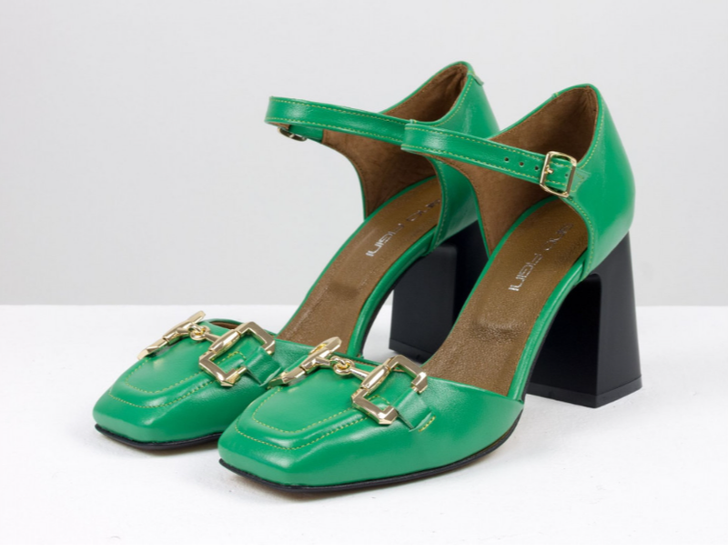 Дизайнерские босоножки с элементами лоферов, на высоком широком каблуке, итальянская кожа