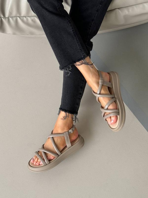 Женские стильные, легкие бежевые кожаные босоножки, из натуральной кожи, топ продаж