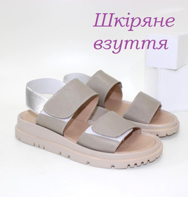 Бежевые женские босоножки на двух липучках и резинке, кожаные босоножки бежевые, кожаные б...