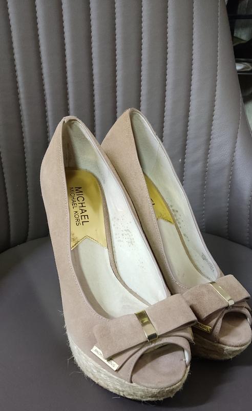 босоножки Michael Kors Meg Tan Khaki из натуральной замши на танкетке с бантом длина по стельке 24 см состояние как новые /идеальные состояния оригинал