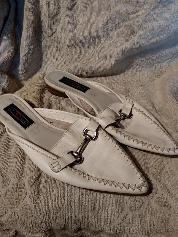 Кожаные белые мюли на низком ходу в хорошем состоянии,на 39 размер,стелька 27 см.