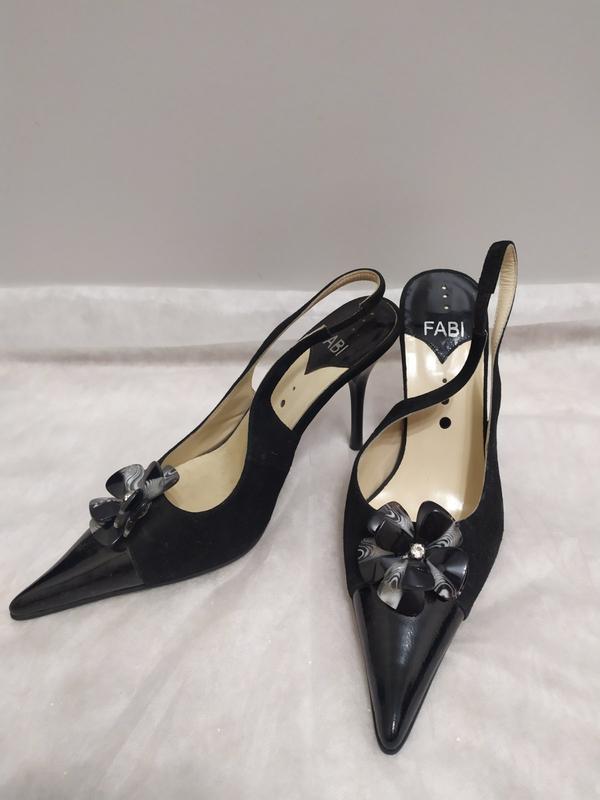 Босоніжки на шпильці з квіткою з каміння. Бренд Fabi. Натуральна шкіра. скомбінована з замшею. Нові! Висота шпильки 10 см. Квітка з штучних каменів, об'ємна. Самовивіз або пересилання після оплати на карту.