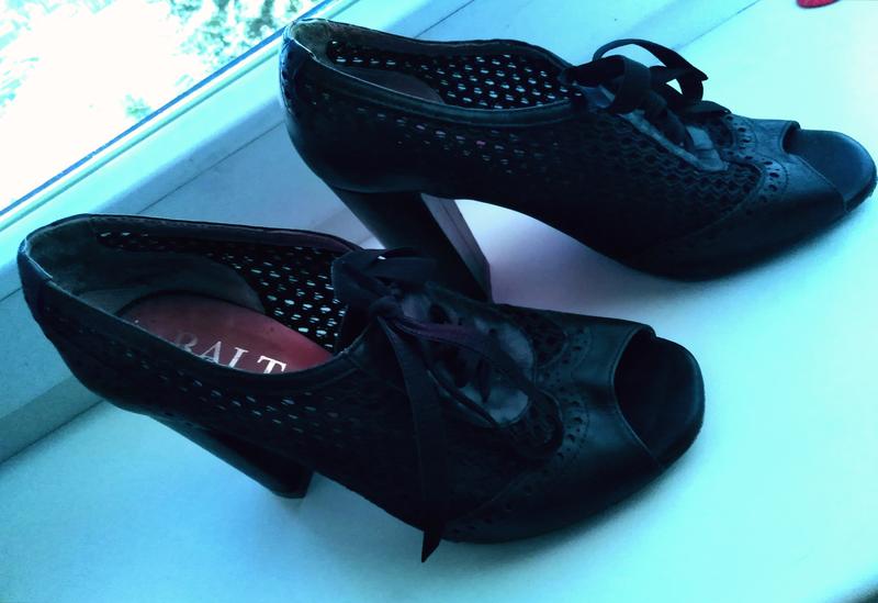 Шкіряні іспанські туфлі BALTARINI, дуже зручні, на стійкому каблуці. Стан хороший, але є невеликий дефект на одному каблуку (на 3 фото). По устілці-22,5 см, каблук-9см