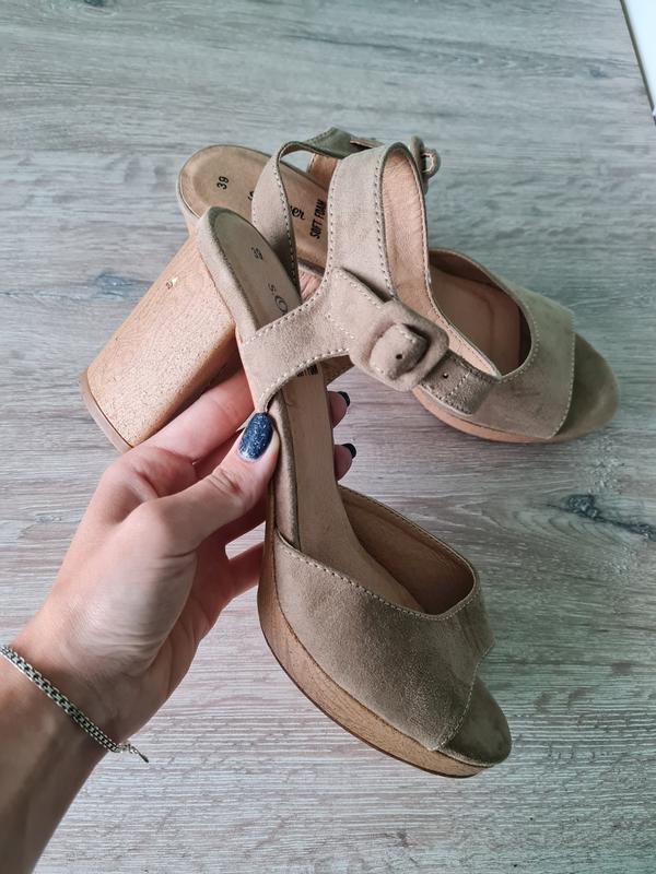 Босоніжки бренду S.Oliver. Широкий зручний каблук. Мягенькі. Сток з Німеччини. Матеріал верху-текстиль під замшу. ➡️розмір 39,довжина устілки 25см. Є нюанси: задирки на каблуці.