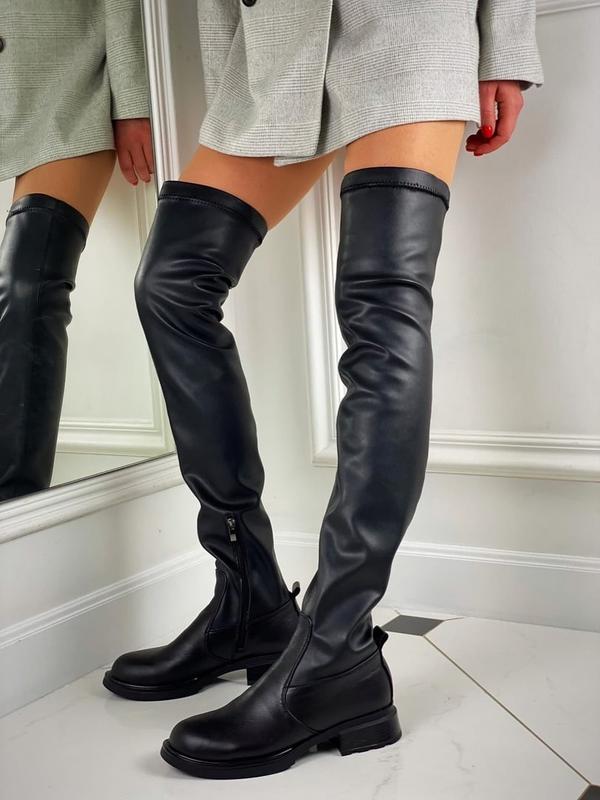 Нова модель доступна до замовлення ☺️ Код 10040 (байка) Код 10040-1 (хутро - єврозима) Ботфорти Jemilis. Натуральна шкіра. Зверху стрейч шкіра, відмінно тягнеться. Каблук 3см, підошва спереду 1см. Обхват ікри 34-36 см, зверху 40-44см. Висота від п'яти 64 см. Розмірний ряд: 36-40 Колір: чорний. Зроблено в Україні. Байка: 2640 грн Хутро: 2680 грн