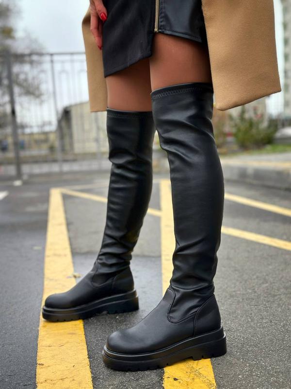 0519 ботфорты демисезонные, сапоги высокие, сапоги-чулки на флисе