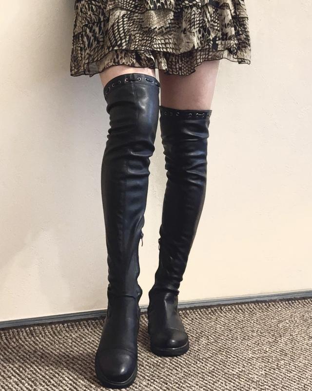 Длина от подошвы 60см, эко кожа, одевались несколько раз, состояние очень хорошее, без дефектов! демисезонные. Размер 37