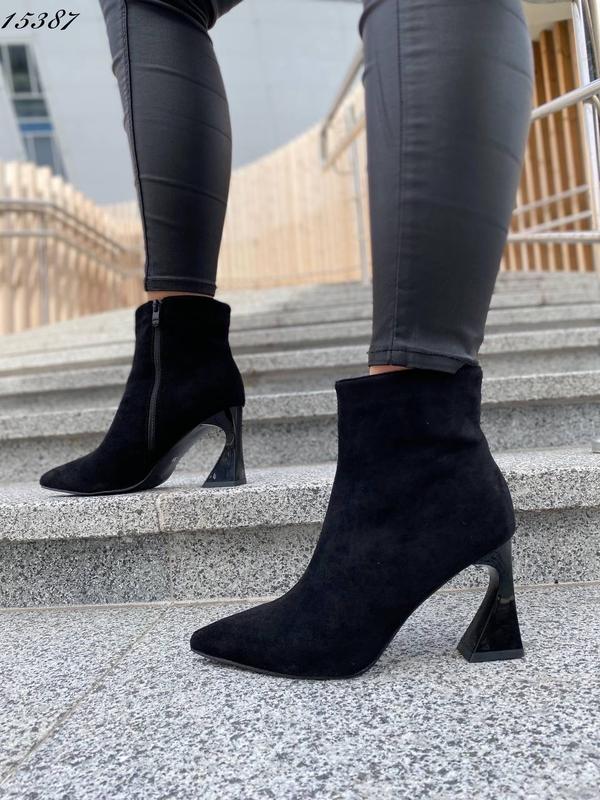 Зустрічайте новинку в наявності 🍃 Жіночі ботильйони чорні замшеві Polly Код: 15387 Колір чорний Матеріал: еко замш Усередині: фліс Каблук: 8,5см Розмірний ряд із 36 по 41р. Фабрична коробка 36 - 23,5см 37 - 24см 38 - 24,5см 39 - 25см 40 - 25,5см 41 - 26см