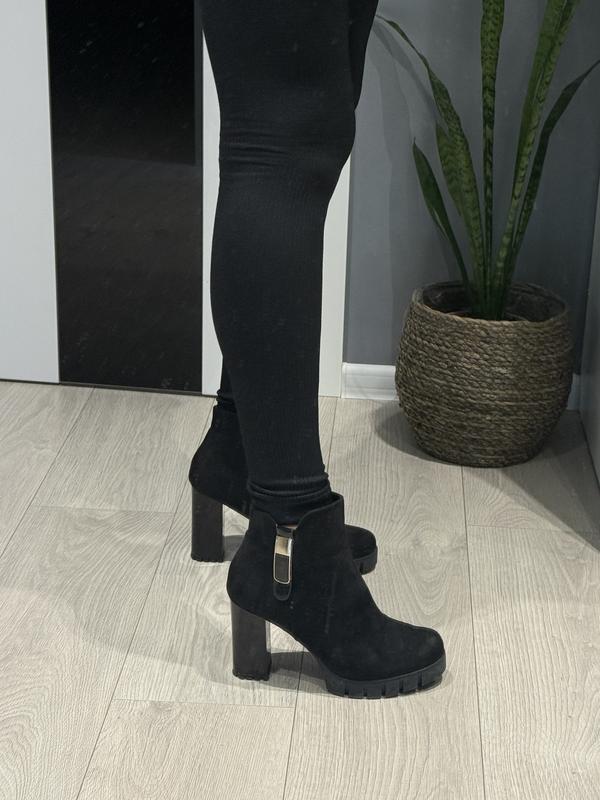 👢 Осінні сапожки із замінника замші на стійкому каблуку, 40 розмір Стильні осінні сапожки з якісного замінника замші. Мають акуратний вигляд, добре тримають форму та зручні у носінні, зокрема підходять для широкої стопи. Стійкий каблук забезпечує комфорт під час ходьби, модель універсальна — легко поєднується з сукнями, пальтами, джинсами чи спідницями. Характеристики: • ✔️ Розмір: 40 • ✔️ Довжина устілки: 25,5 см (підходить на широку ногу) • ✔️ Матеріал верху: замінник замші • ✔️ Каблук: 10 см, стійкий • ✔️ Колір: чорний • ✔️ Сезон: осінь / весна Стан дуже хороший, без прихованих дефектів. 📩 Пишіть — відповім швидко, за потреби надішлю додаткові фото.