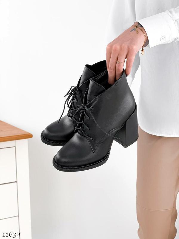 в наявності 🌿 36 37 37 38 39 Код 11634 Демі ботільйони =NA=, колір: BLACK, матеріал: НАТУР. ШКІРА, всередені: байка, висота від п'яти 10, см, підбор 9,5 см, вироб.- Україна. 36= 23,5 см 37= 24 см 38= 24,5 см 39= 25.5 см 40= 26 см 41= 26,5 см
