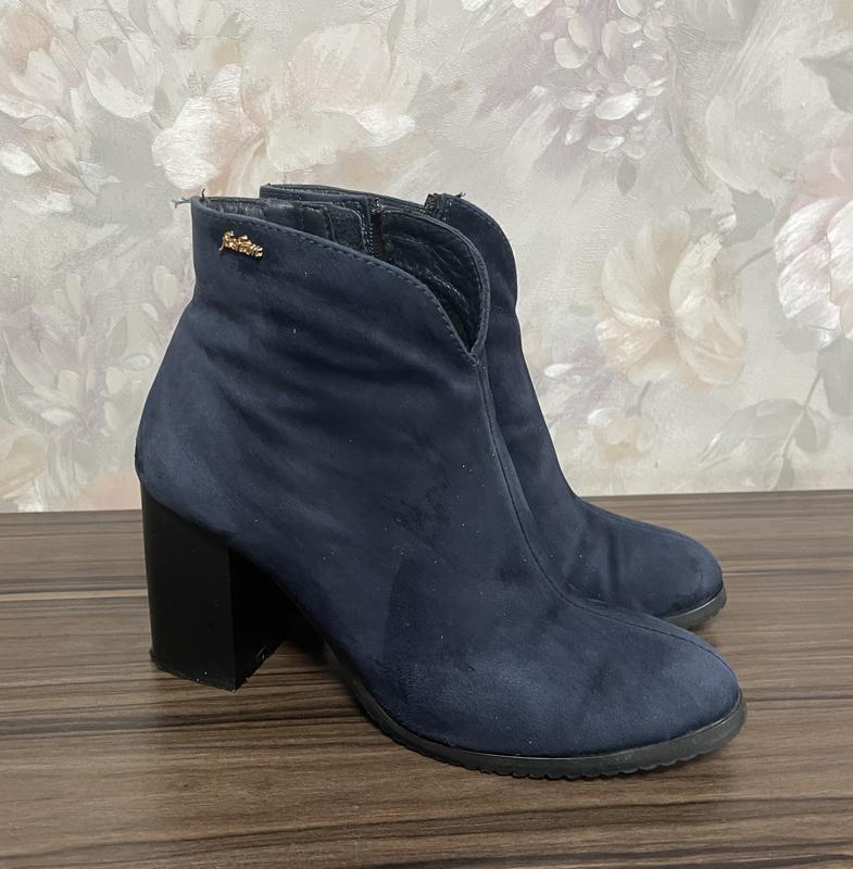 Осінні ботільйони, замша, дуже легкі в догляді, зручний широкий каблук