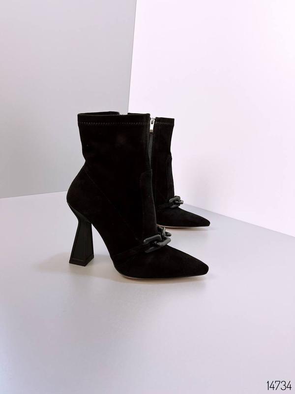 Код 14734 Ботильйони ДЕМІ Еко-замша Колір Black Висота від каблука 14см Каблук 11см Усередині фліс до щиколодки Верх текстиль Фурнітура пластик Розмір у розмір 36-23,5см 37-24см 38-24,5см 39-25см 40-25,5см
