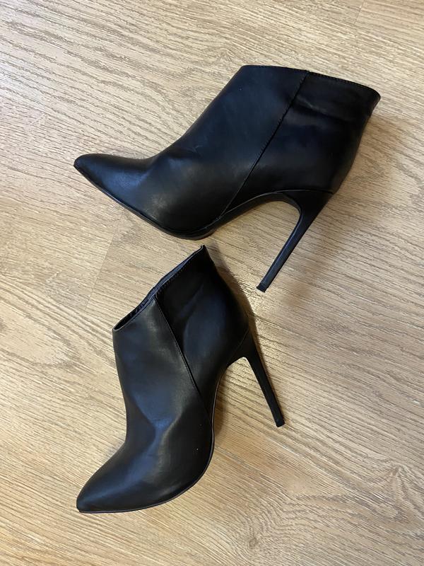 Стильні Чорні ботільйони , шкір зам Одягались 1 раз, великі💔 Розмір 39 Є дефект так як б/у, запитуйте📧🥰