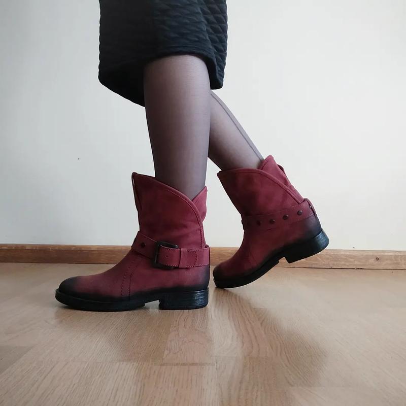 Натуральний нубук, надзвичайний колір, новенькі. Вони нереально зручні і якісні. Є нюанси на останньому фото, взагалі не видно і ні на що не впливає. От є таке у виробників, матеріали на виріб підбирають шик, а на внутрішніх деталях економлять, тому так. Таке лише на одному ботинку, пока на іншому все норм. Вони дійсно дуже класні і нові