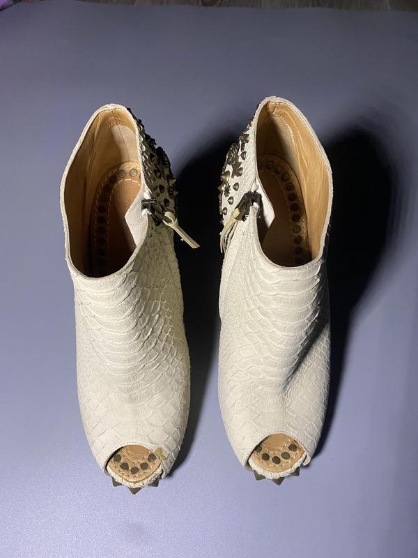 ОРИГІНАЛ! Ботильоны из питоновой кожи с открытым носком, украшены заклепками и шипами. Длина подбора 12. Стелька 23