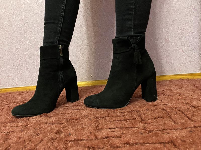 БУ ботильоны (демисезон) состояние отличное (оделала всего один раз). Размер 38. Материал: снаружи - натуральный замш, внутри - байка. Высота каблука 7см. Каблук устойчивый. Ботинки очень красиво смотрятся на ноге, удобные. Возможен торг