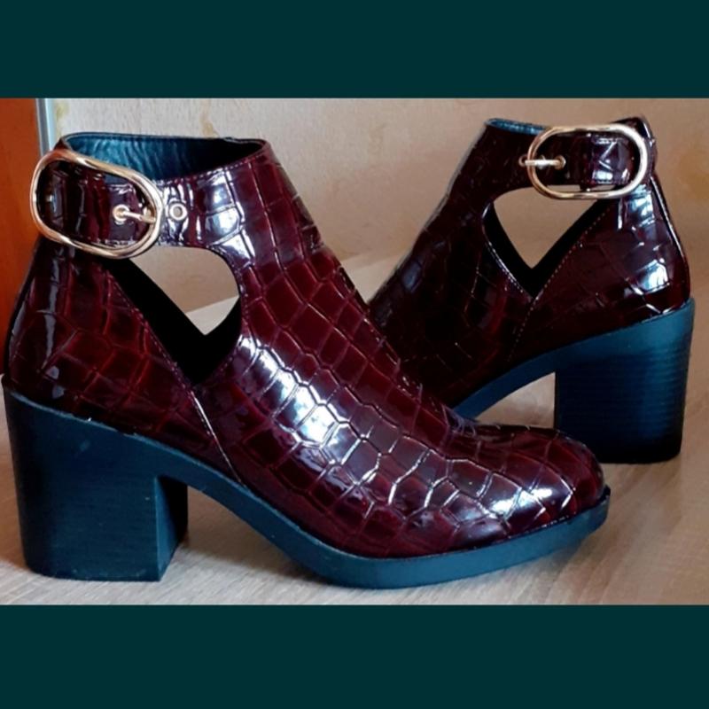 Бордовые ботильоны под крокодиловую кожу , новые, по стельке 25, 5 см, высота каблука 7,5 см. Цена 300 грн.