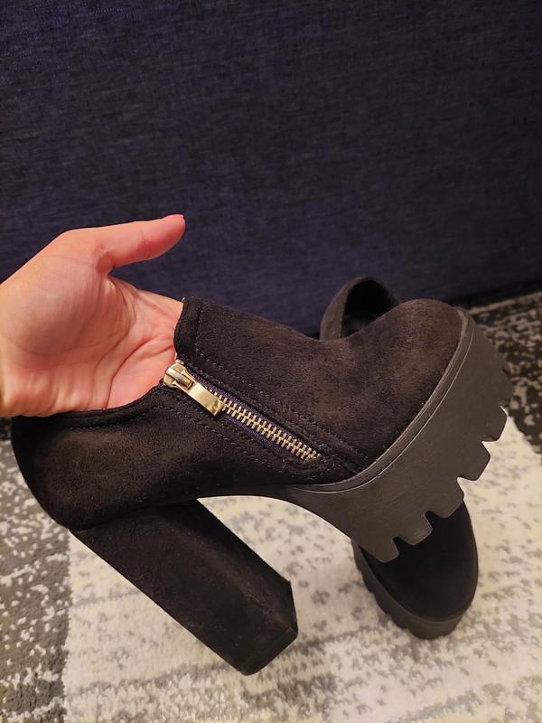 По стельке 22,5 см танкетка 4 см каблук 11,5 см. Дефект: на правом каблуке потертость, на последнем фото видно.