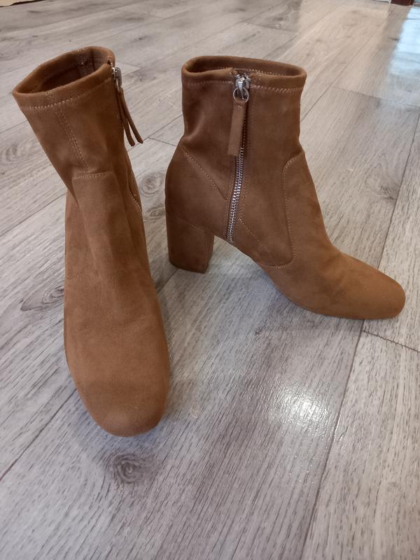 Идеальные, стильные, брендовые ботильоны. Демисезонные, легкие. Лишь примерялись, недостатков нет. Размер 40, стелька 26,5. Очень удобные, каблук 7. Универсальный цвет кэмел.