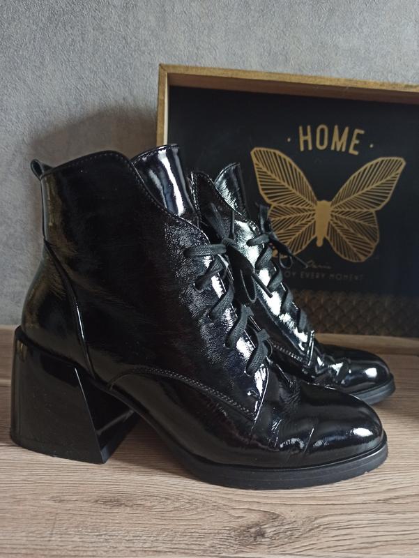 Лаковые кожаные ботильоны, высота подбора по высшему краю 6,5 см