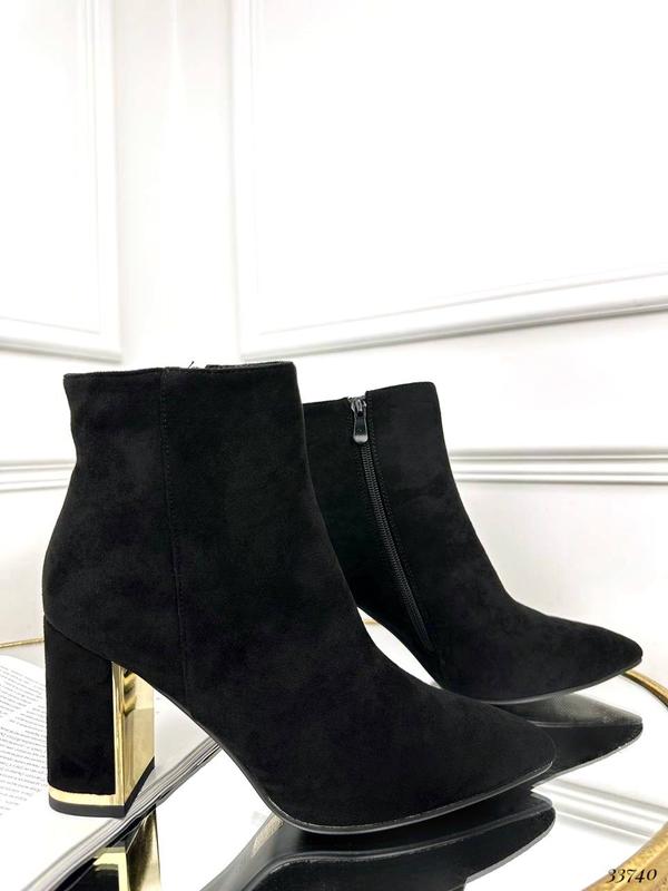 💰цена 1550 Ботильоны на устойчивом каблуке. Утеплены тонким флисом Цвет: чёрный Материал: эко замш Сезонность: демисезонные Код товара:33740 ▪️Высота каблука:9 см ▪️Высота от пятки:11,5см Размерная сетка : 36-23,5; 37-24; 38-24,5; 39-25; 40-25,5; 41-26,5см