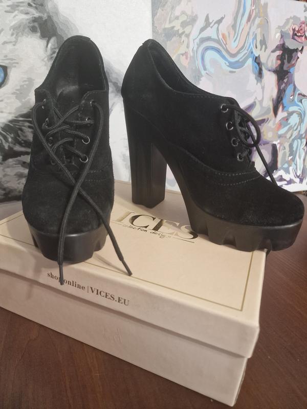 Ботинки на шнуровке, размер 39, высота каблука 12.5, высота танкетки 2.5, материал замш искусственный/нубук. Удобные, полноразмерные, каблук устойчивый, прочный. Присутствуют некоторые потертости видны на фото. В носу были не долго. (Возможен торг )