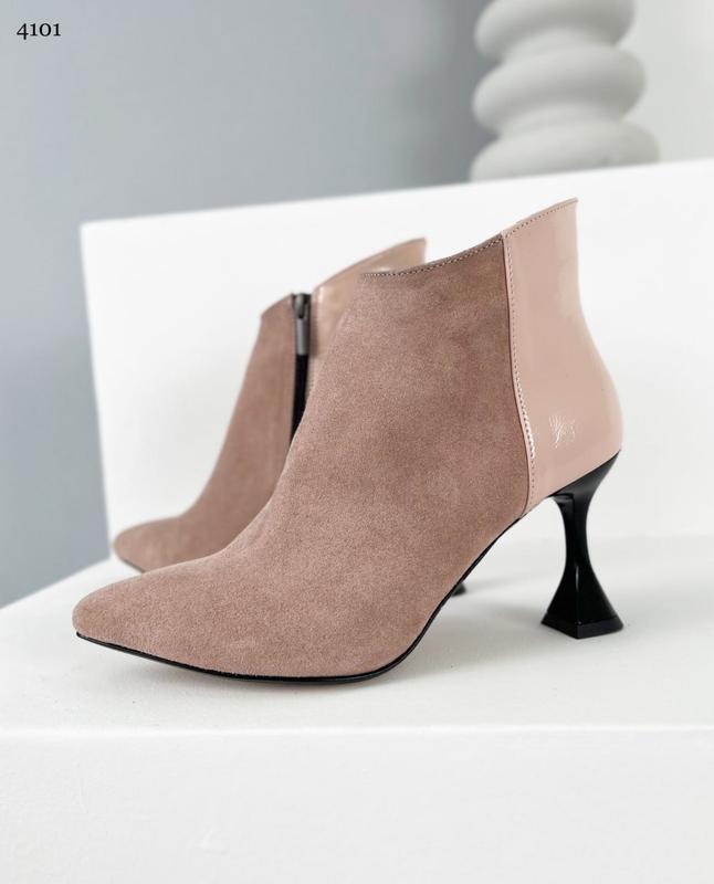 SALE 🔔 1000 грн 38=24,3см "Ботильони Натуральная замша + лак подклад – флис цвет - ПУДРА высота от пятки 11 см, каблук 8 см производство Украины" Присутствовали 1650 грн