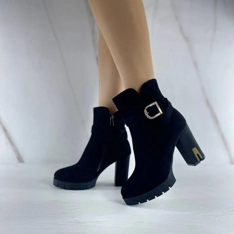 ЖІНОЧІ БОТІЛЬЙОНИ код 2559 матеріал - еко-замша Висота 12 см, всередині фліс Каблук 9,5 см, платформа 2 см виробник Угорщина розмір в розмір, колір чорний демисезон 36- 23,5 см 37- 24 см 38- 24,5см 39- 25,5 см 40- 26 см 41- 26,5 см