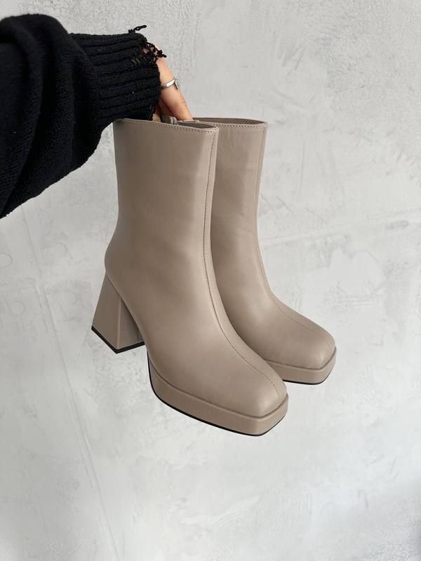 Стильні ботильйони Неймовірно зручні Код 4958 (беж) ДЕМІ/ЗИМА Натуральна шкіра Всередині байка/набивне хутро згідно сезону Виробник Україна ▪️Висота від п‘ятки 15.5 см ▪️Висота каблучка 8.5 см ▪️Платформа спереду 2 см Розмірна сітка: 36-23.5 37-24 38-24.5 39-25 40-26